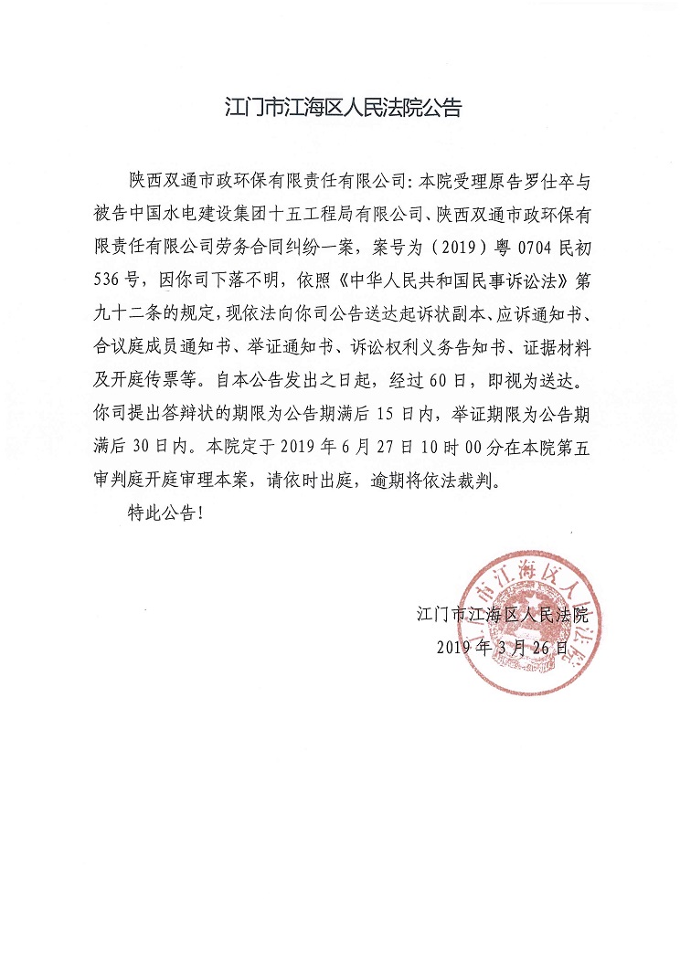 公告(2019粤0705民初536号)
