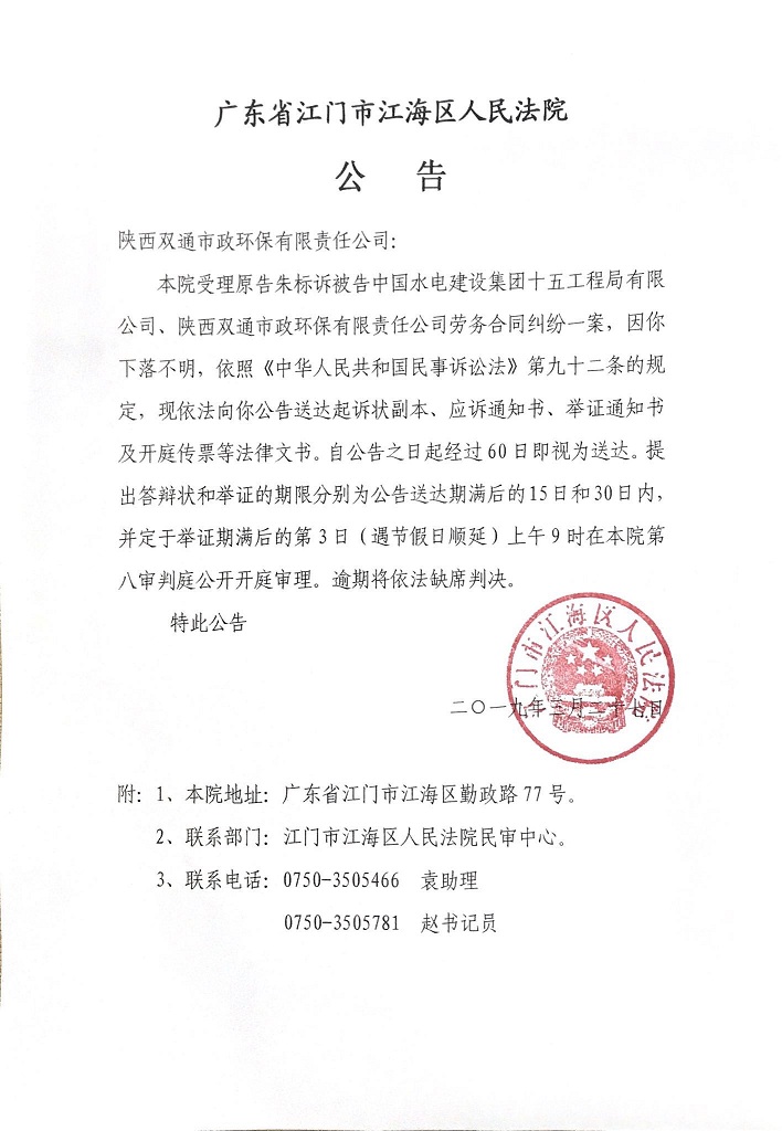 公告(2019粤0704民初529号)