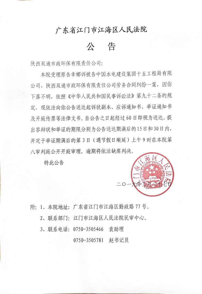 公告(2019粤0704民初531号)