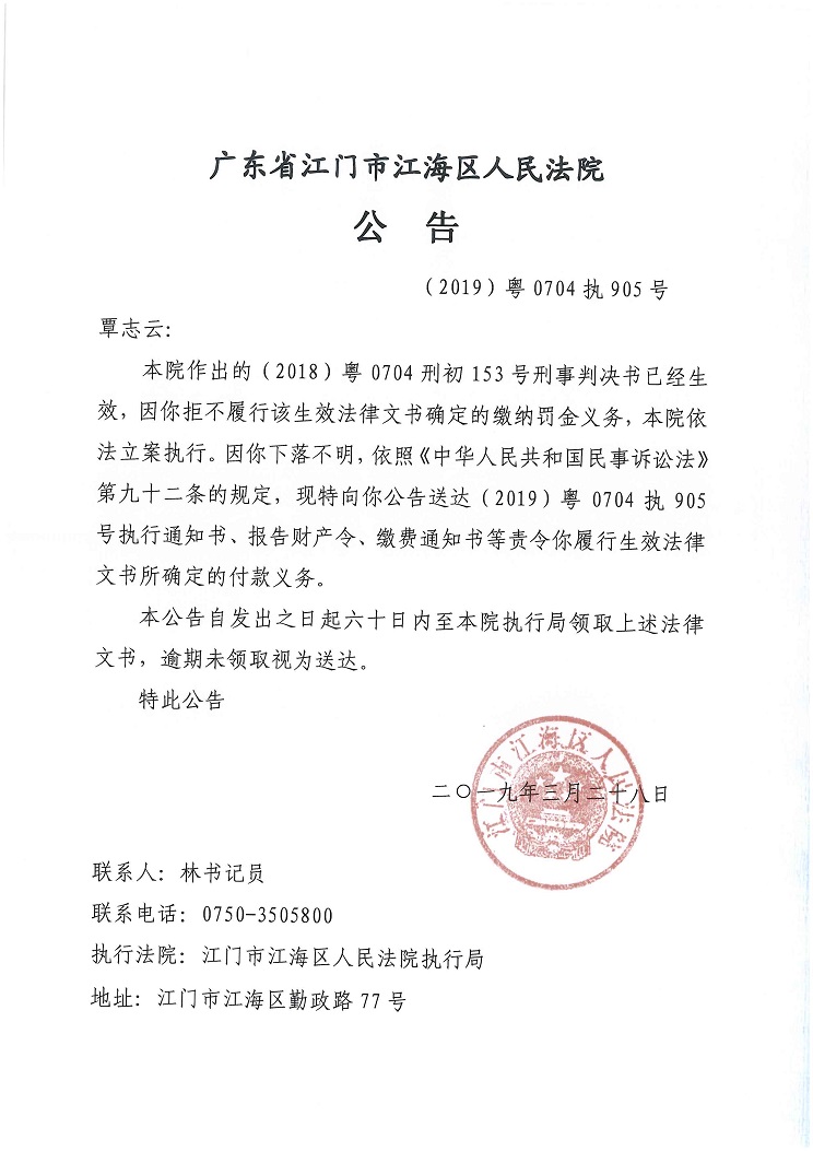 公告(2019粤0704执905号)