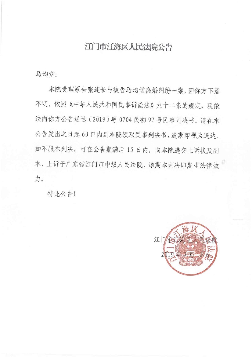 公告(2019粤0704民初97号民事判决书)