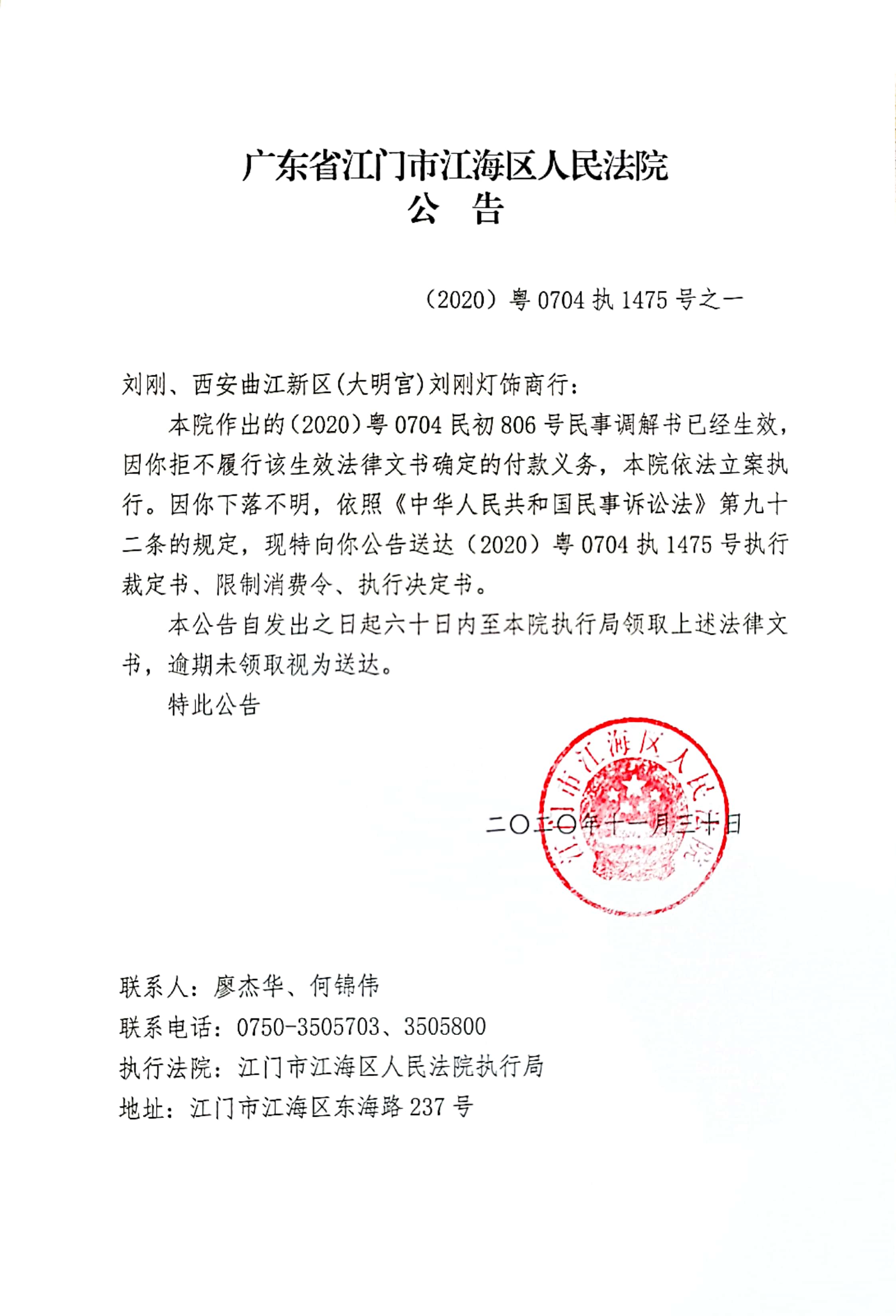 公告(2020粤0704执1475号之一)