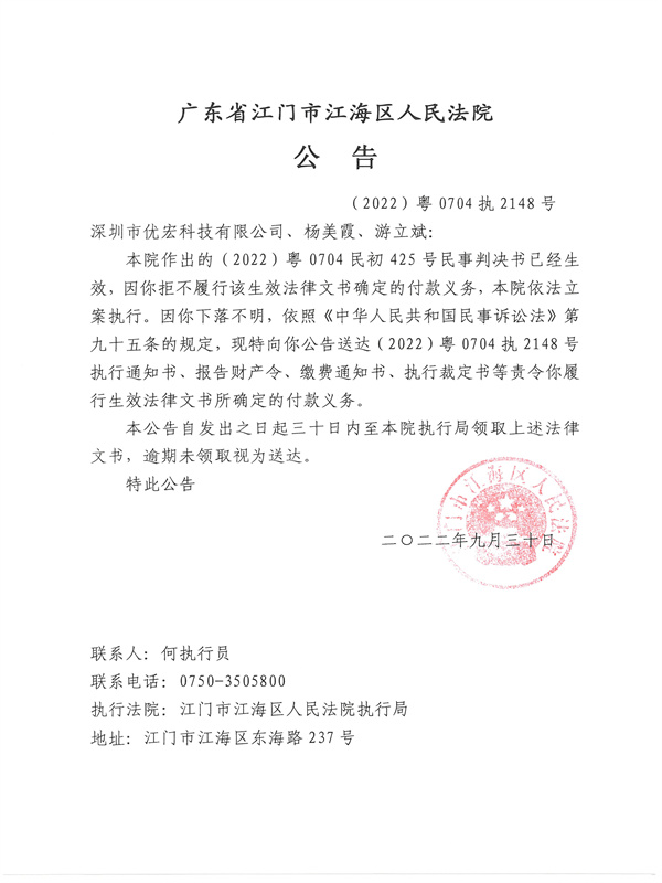 公告(2022)粤0704执2148号