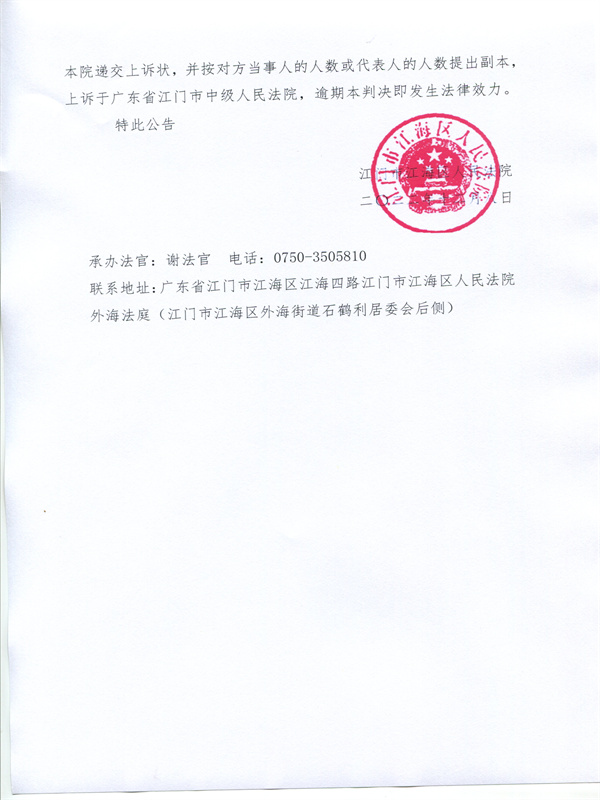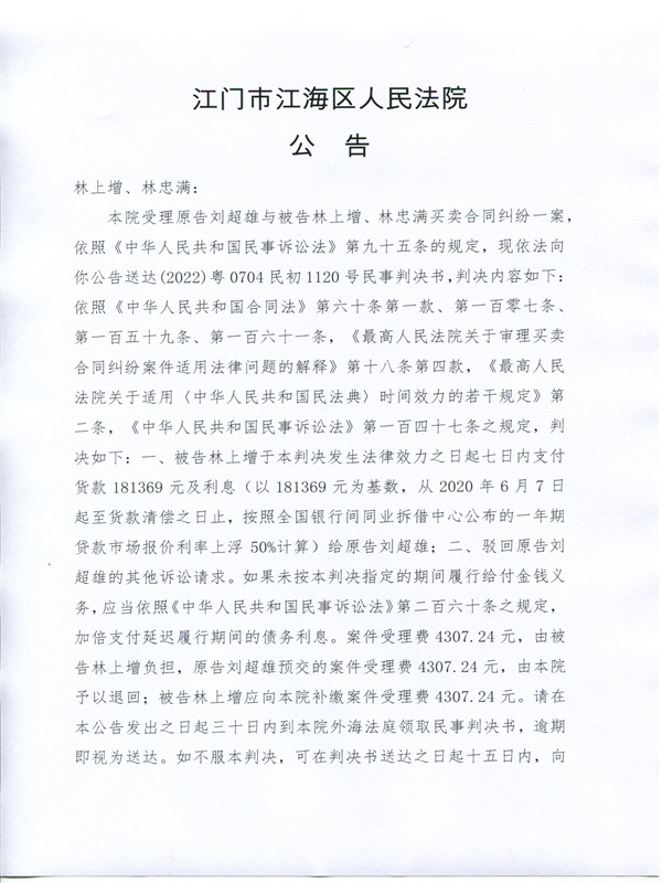 公告(2022)粤0704民初1120号