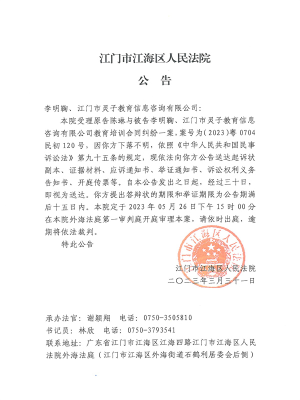 公告(2023)粤0704民初120号