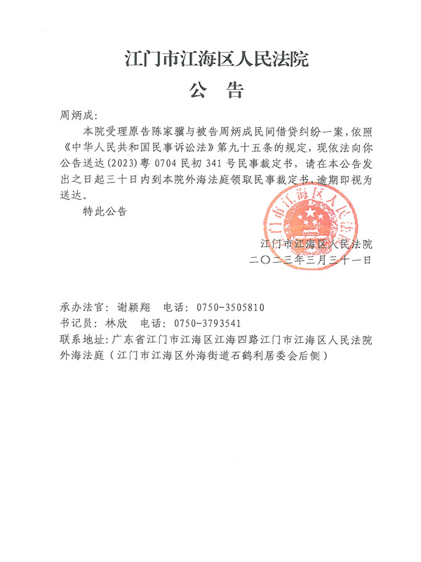 公告(2023)粤0704民初341号