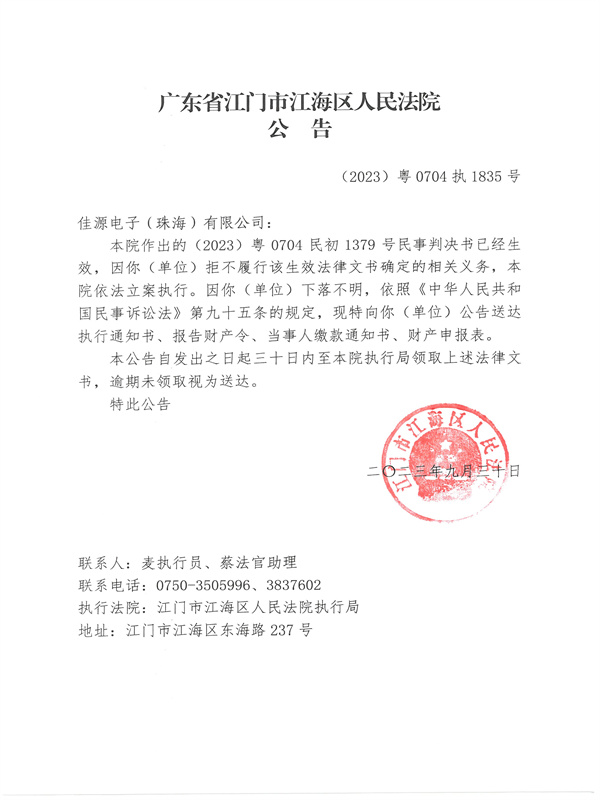 公告(2023)粤0704执1835号