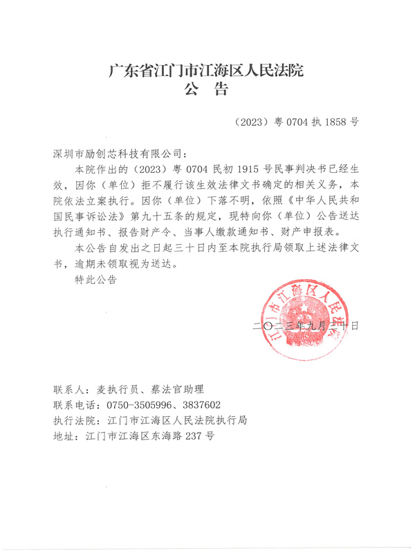 公告(2023)粤0704执1858号