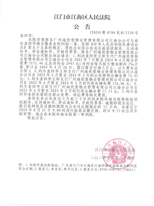 公告(2024)粤0704民初2330号