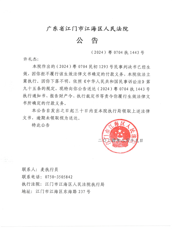 公告(2024)粤0704执1443号