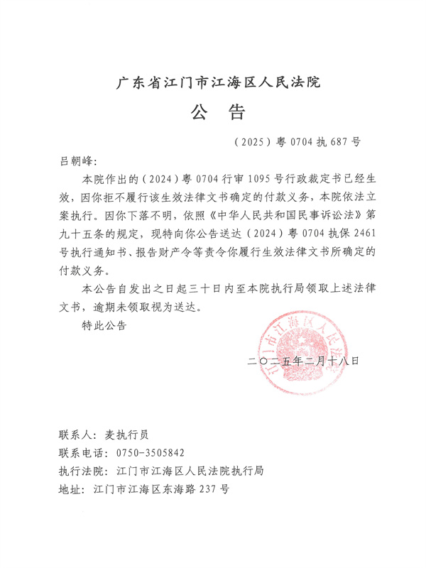 公告(2025)粤0704执687号