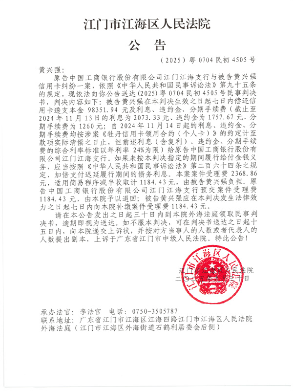 公告(2025)粤0704民初4505号