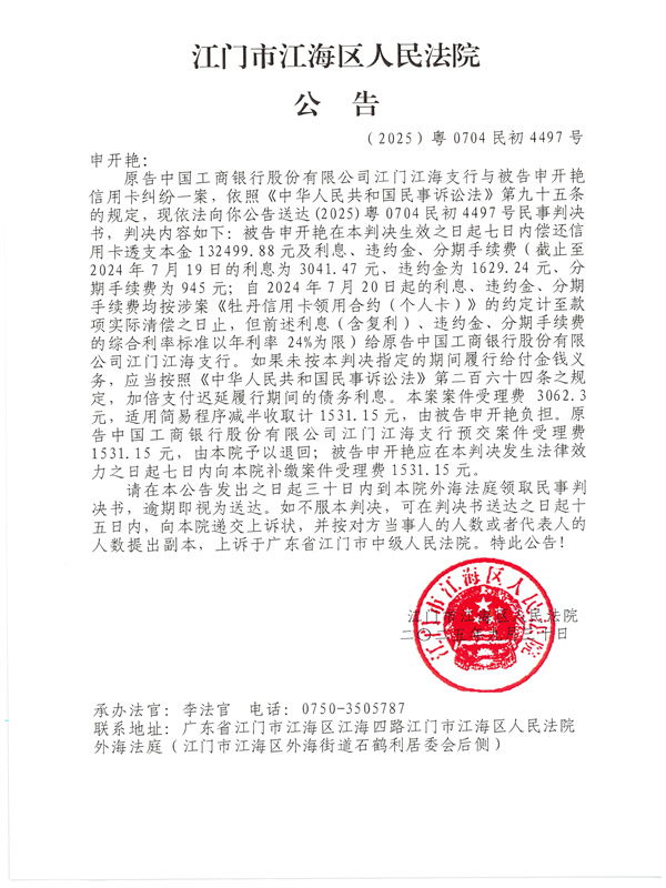 公告(2025)粤0704民初4497号