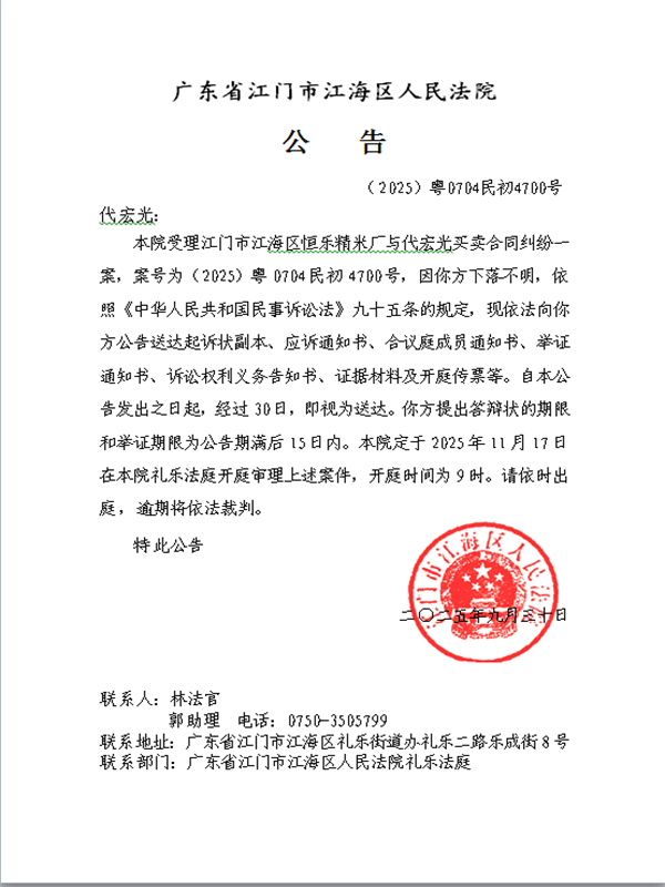 公告(2025)粤0704民初4700号