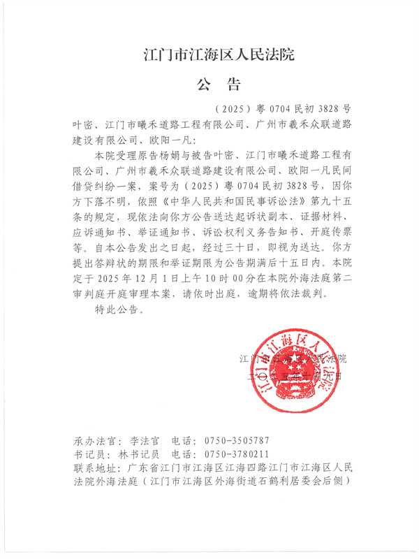 公告(2025)粤0704民初3828号