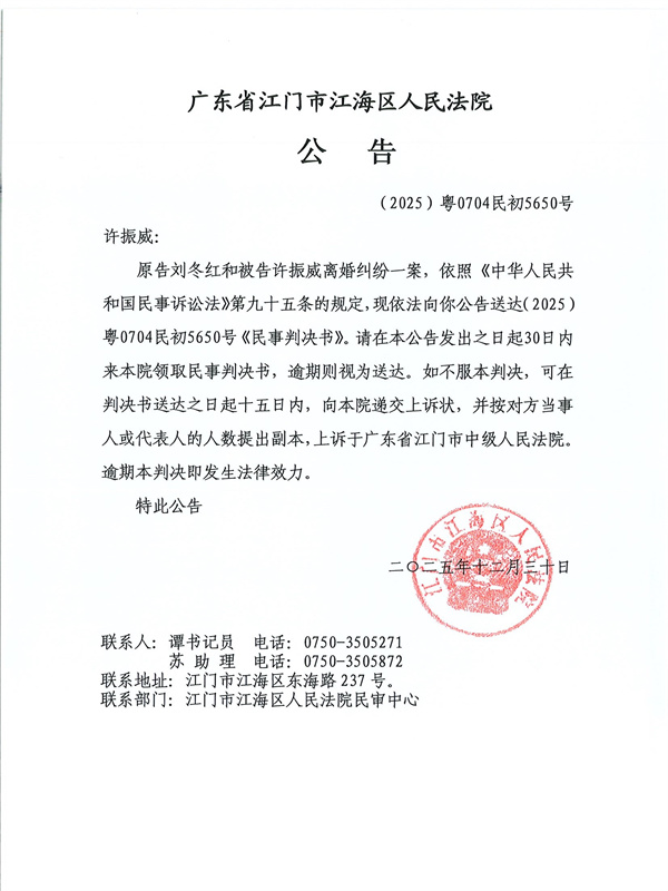 公告(2025)粤0704民初5650号