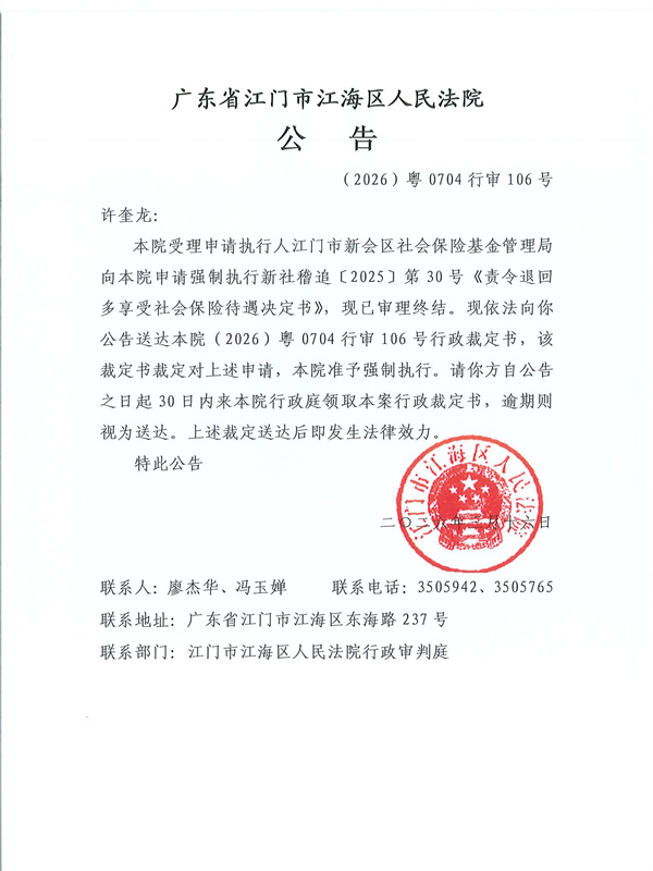 公告(2026)粤0704行审106号
