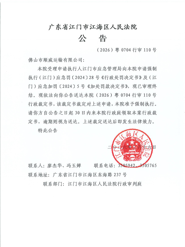 公告(2026)粤0704行审110号