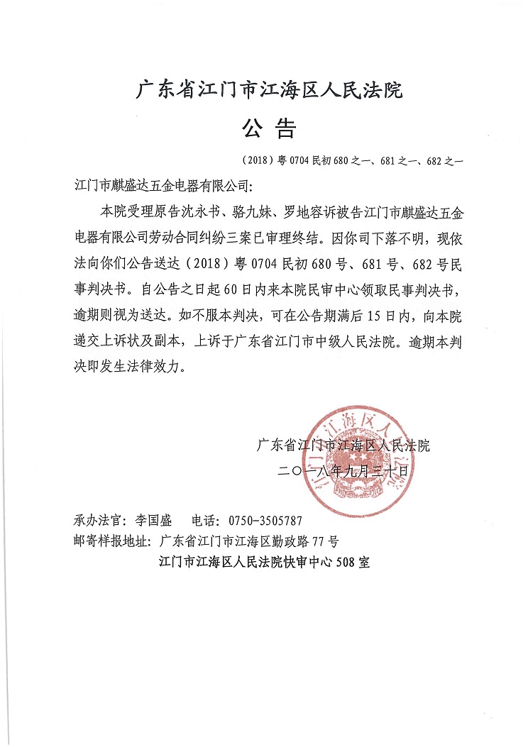公告(2018粤0704民初680,681,682之一)