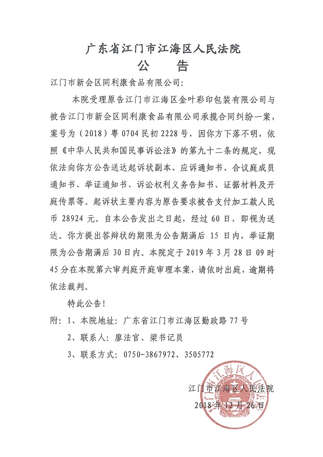 公告(2018粤0704民初2228号)