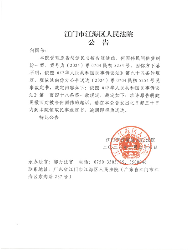 公告(2024)粤0704民初5254号