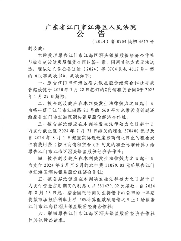 公告(2024)粤0704民初4617号