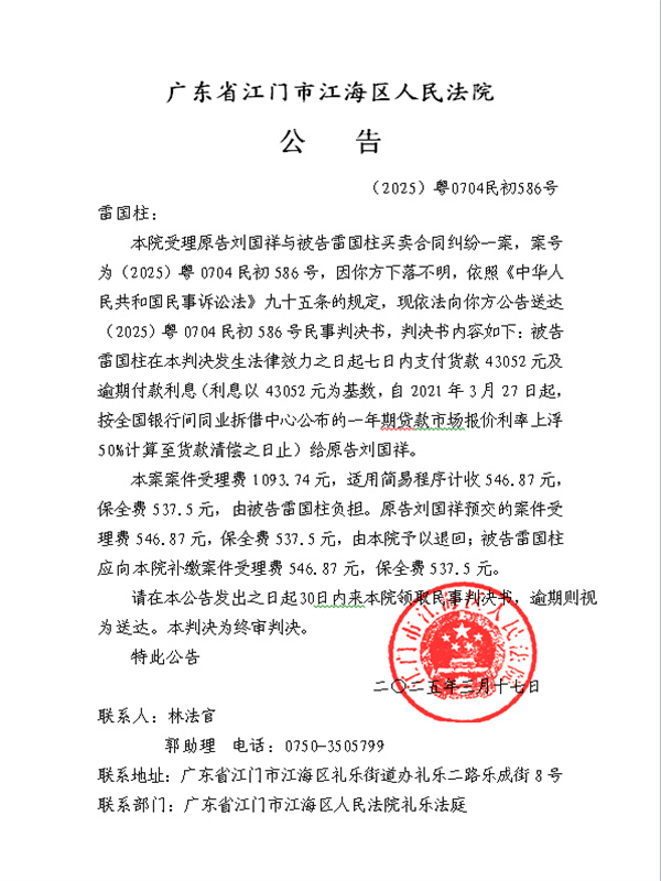 公告(2025)粤0704民初586号