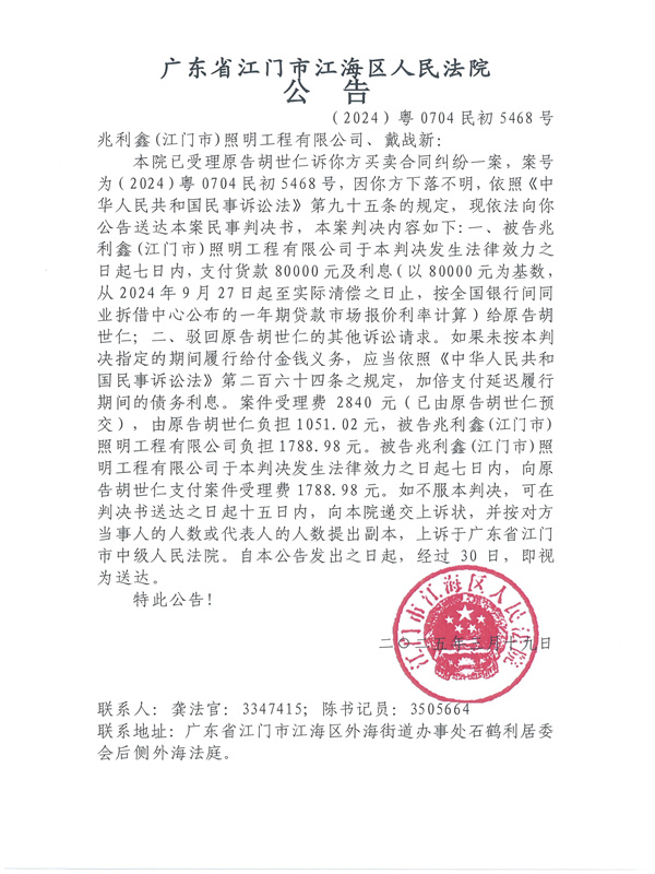 公告(2024)粤0704民初5468号