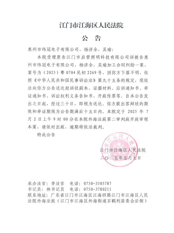 公告(2025)粤0704民初2269号