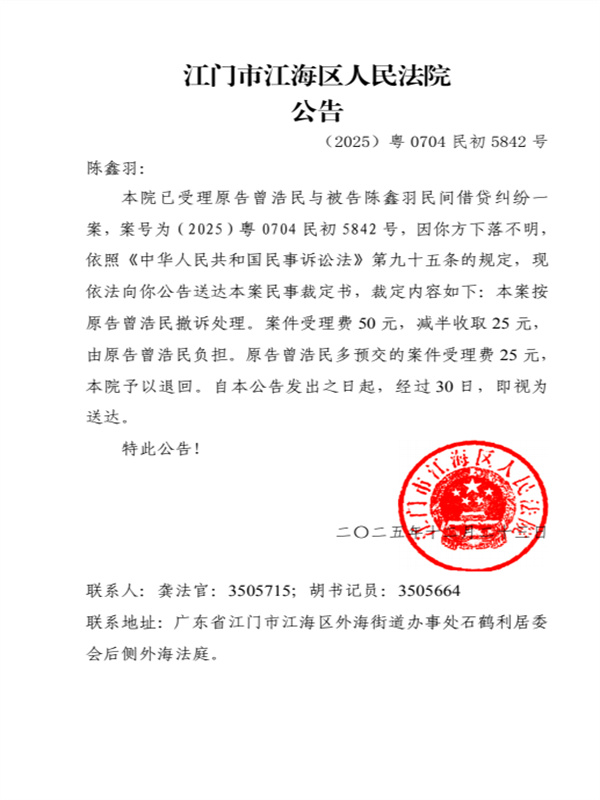 公告(2025)粤0704民初5842号