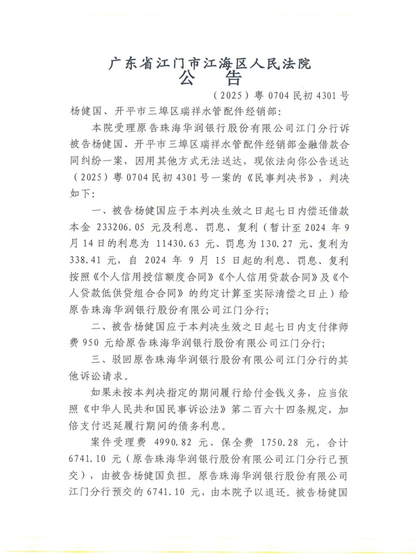 公告(2025)粤0704民初4301号