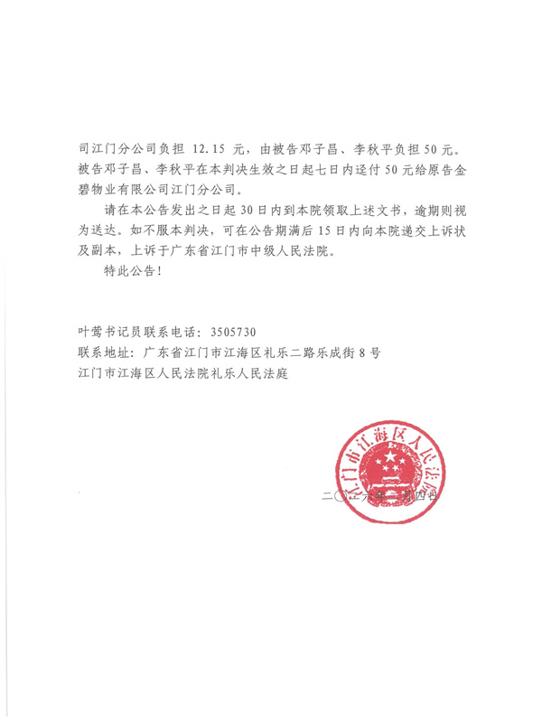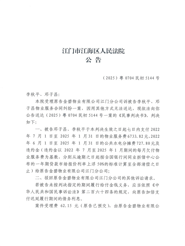 公告(2025)粤0704民初5144号