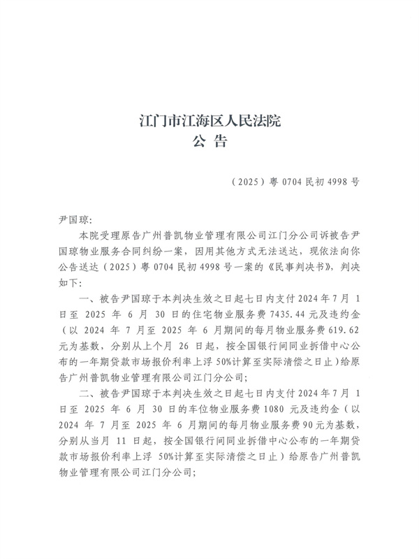 公告(2025)粤0704民初4998号
