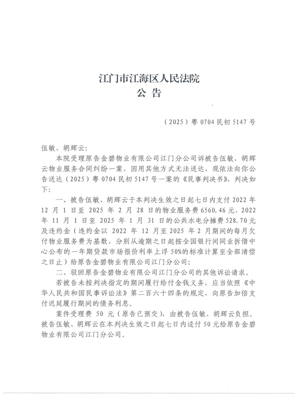 公告(2025)粤0704民初5147号