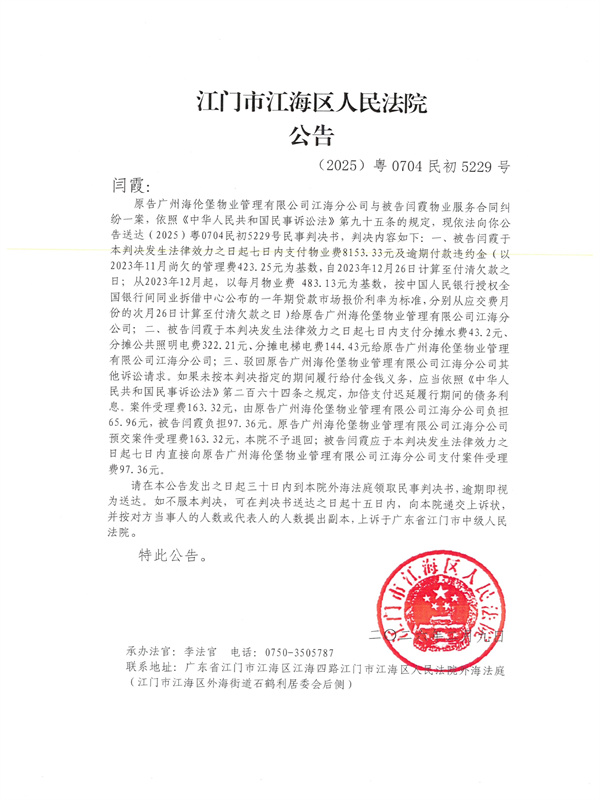 公告(2025)粤0704民初5229号