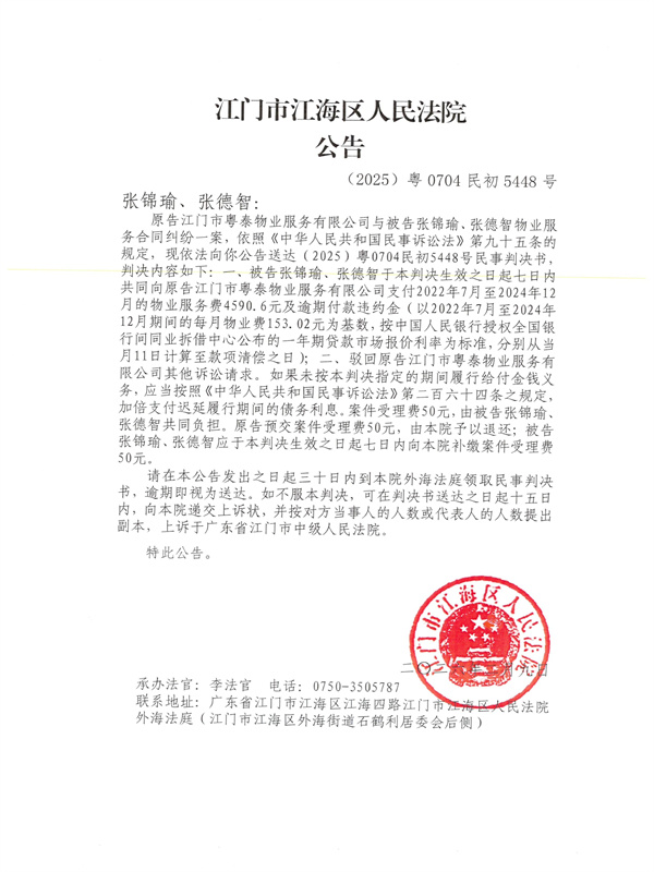 公告(2025)粤0704民初5448号