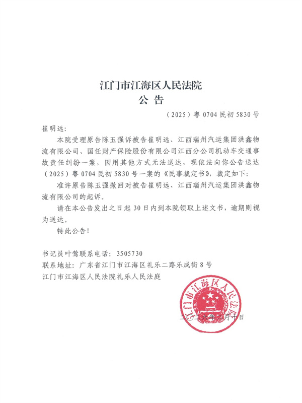 公告(2025)粤0704民初5830号