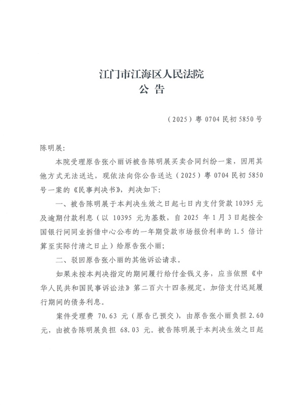 公告(2025)粤0704民初5850号