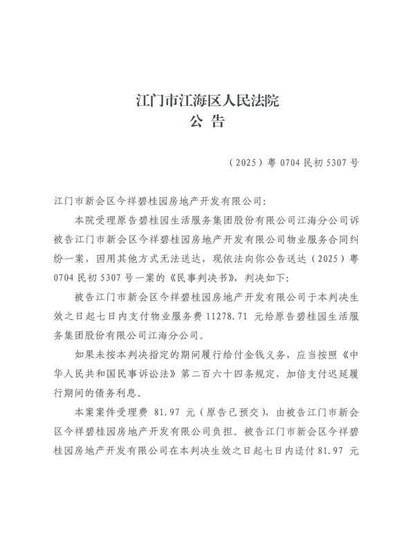 公告(2025)粤0704民初5307号