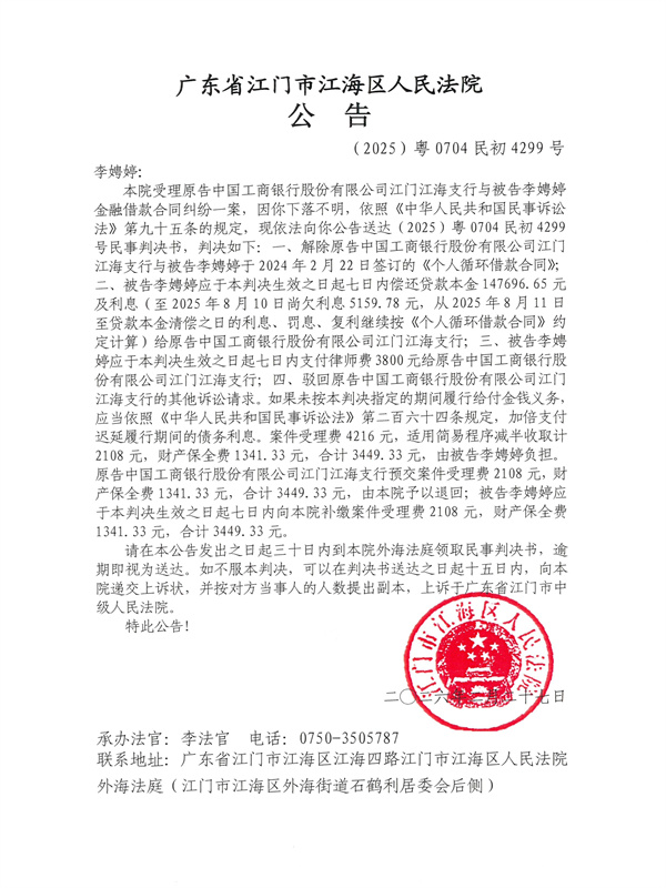公告(2025)粤0704民初4299号