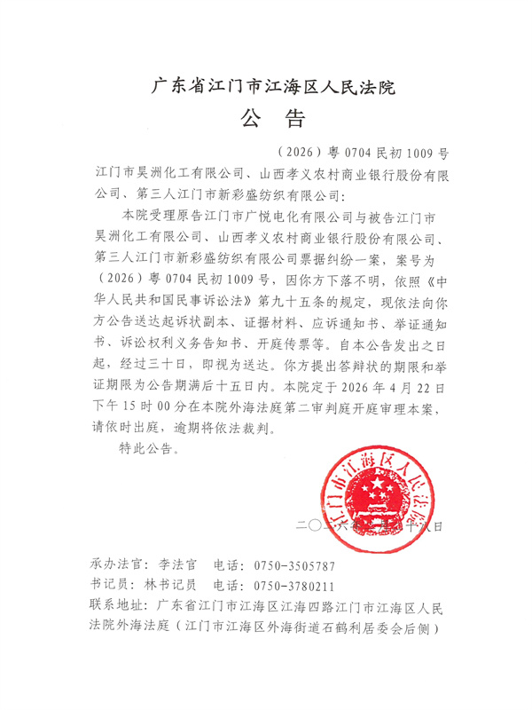 公告(2026)粤0704民初1009号