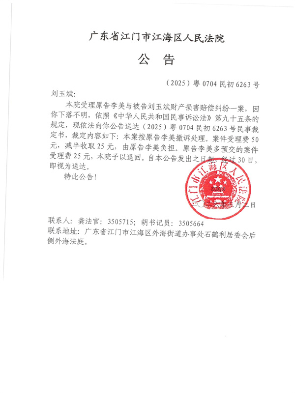 公告(2025)粤0704民初6263号