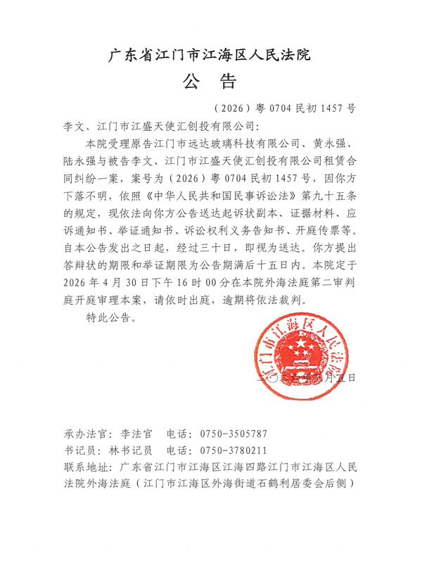 公告(2026)粤0704民初1457号