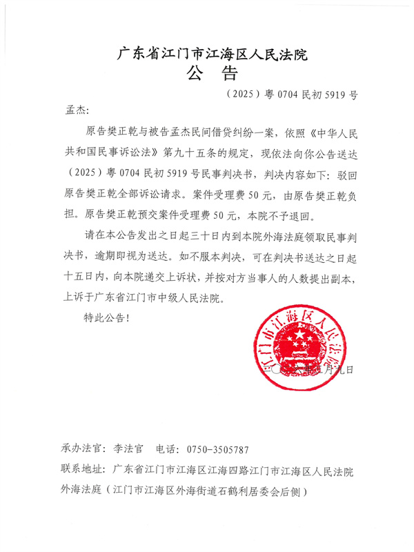公告(2025)粤0704民初5919号