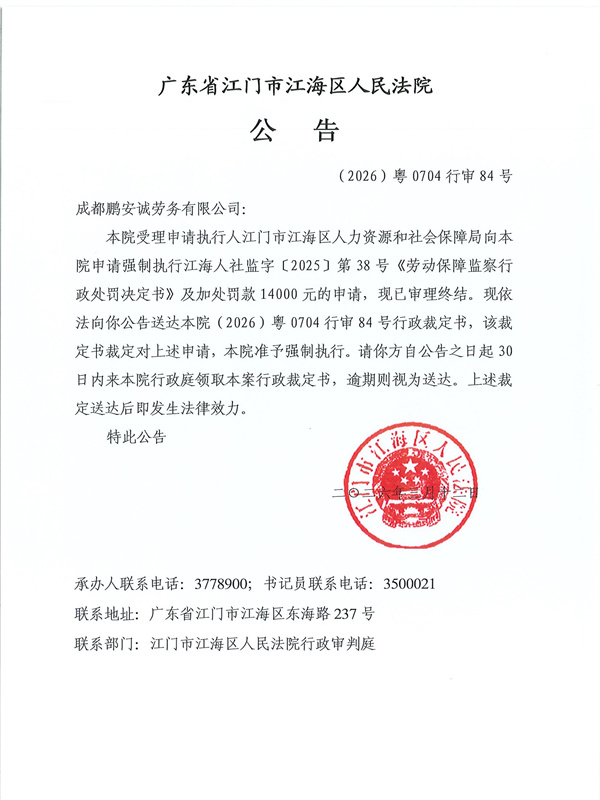 公告(2026)粤0704行审84号