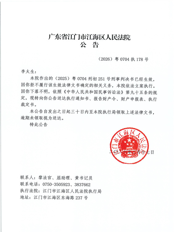 公告(2026)粤0704执178号