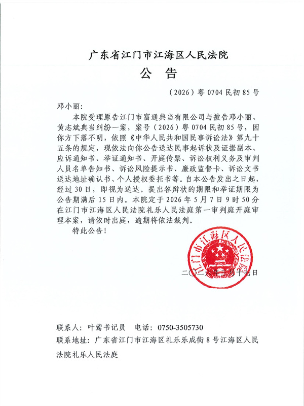 公告(2026)粤0704民初85号