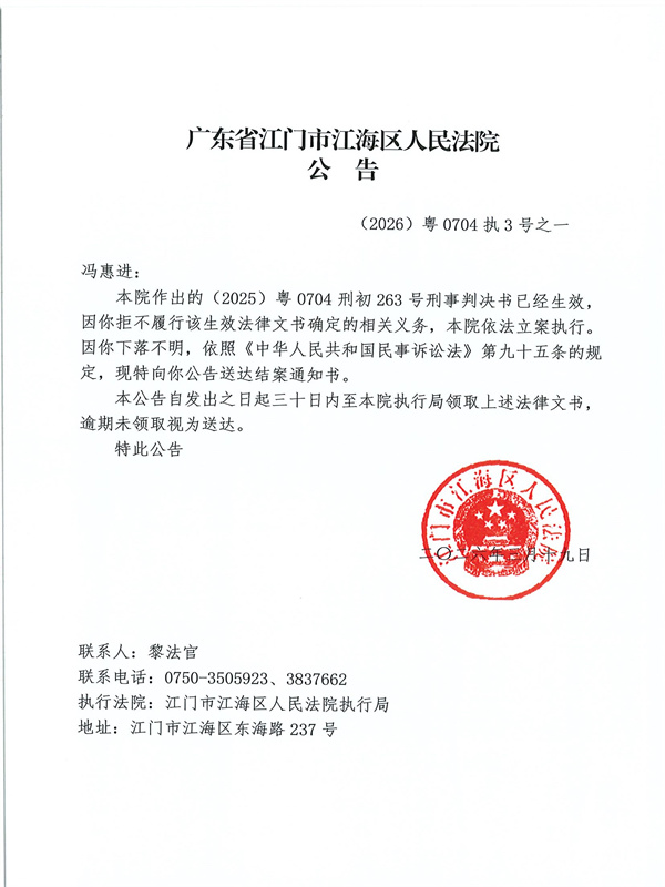 公告(2026)粤0704执3号之一