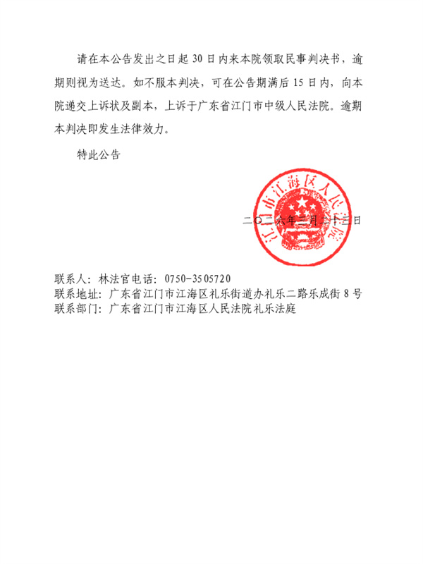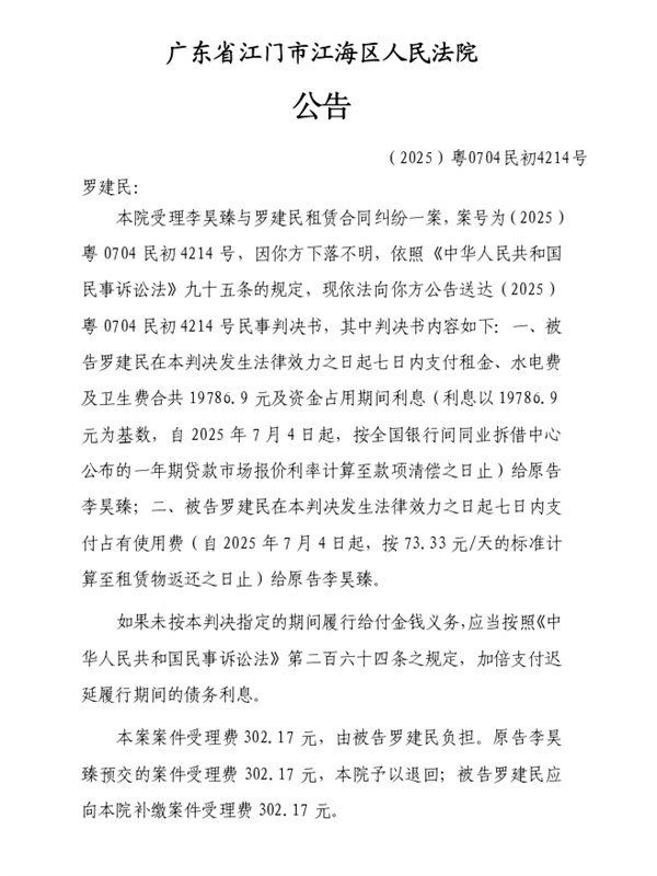 公告(2025)粤0704民初4214号