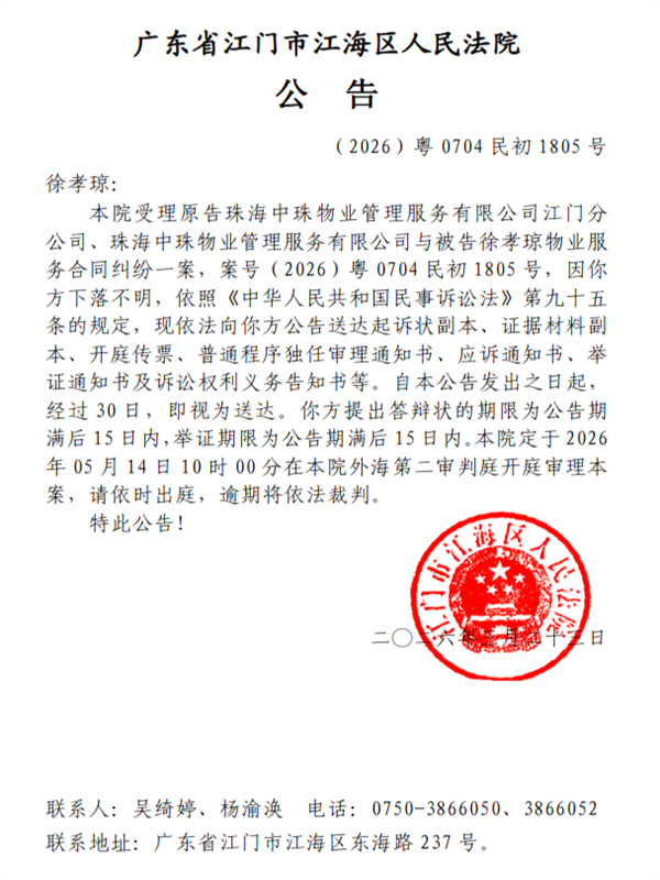 公告(2026)粤0704民初1805号